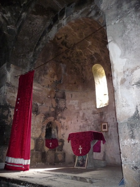 Kloster Sanahin - An dem Vorhang erkennt man dass hier noch Gottesdienste abgehalten werden.