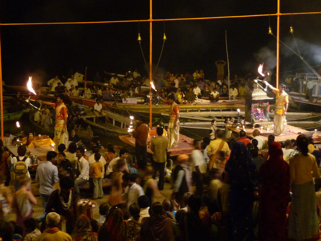 Junge Brahmanen vollziehen allabendlich eine öffentliche mehrstündige Puja
