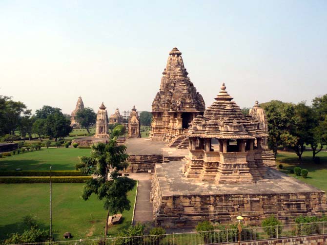 Blick auf die westliche Tempelgruppe in Khajuraho