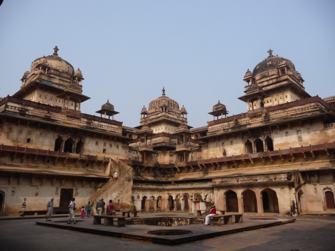 Jahangir Mahal mit Chattris (Dachpavillons) in Orcha