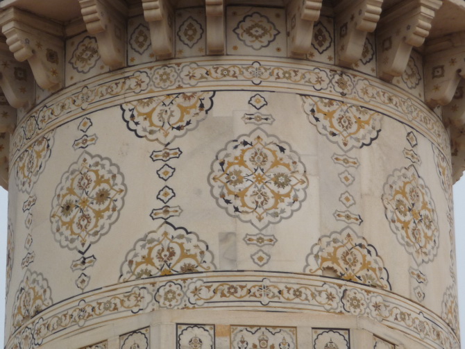 Mausoleum Itmad-ud-Daulah in Agra. Die Intarsien hier sind noch feiner als die des Taj Mahal.